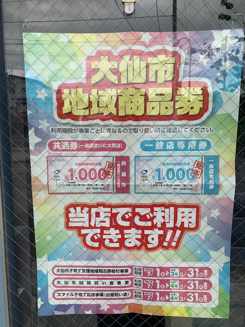 大仙市地域商品券 当店でもご利用できます